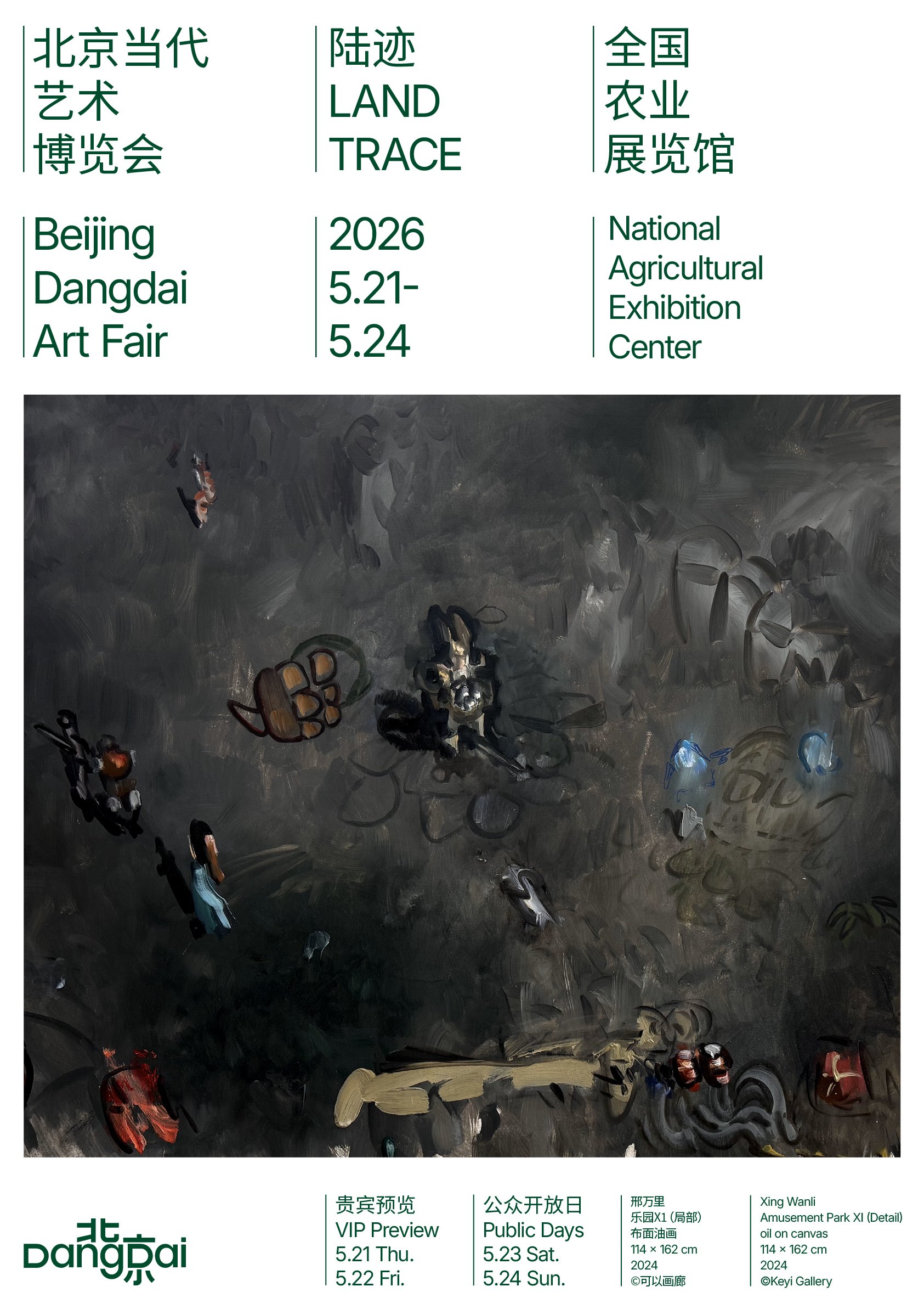 北京当代·艺术博览会2026将于5月21日至24日于全国农业展览馆的11号馆举办,其中5月21日至22日为贵宾预览日,5月23日至24日为公众开放日。本届艺博会以“陆迹”(LAND TRACE)为主题,从地缘文化与历史地理的视角出发,在多重语境中重新观察文化差异与不均经验,在价值重塑的时进一步勾勒当代艺术的细节版图。